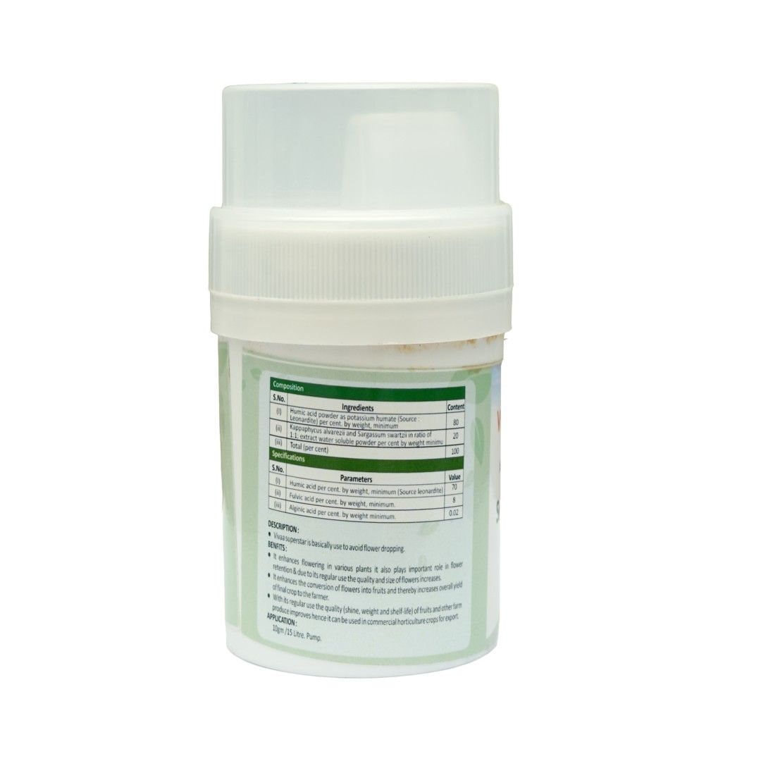 Vivaa Super-Star is a plant booster designed to enhance flowering and fruit formation, ensuring healthy plant development and better yields.